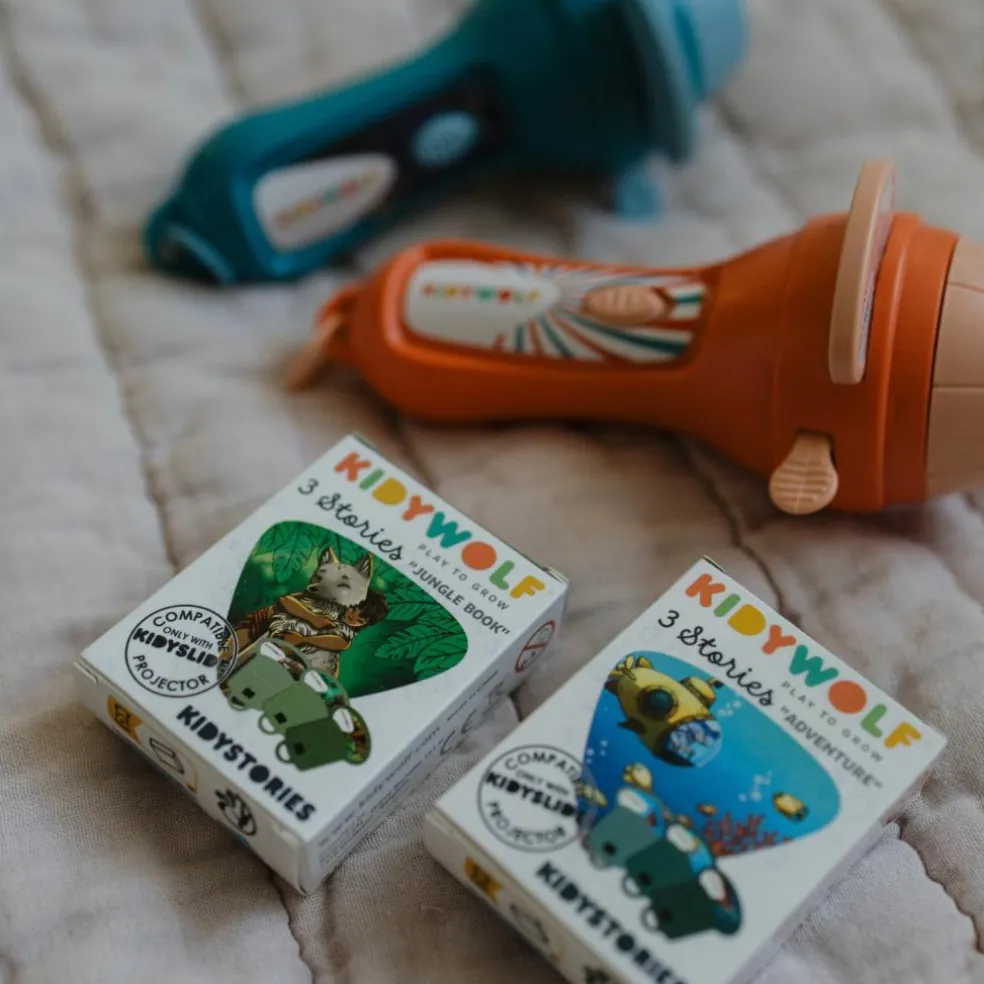 KIDYSTORIES est un ensemble d’histoires conçu pour être utilisé avec la torche à histoires KIDYSLIDE. Chaque set d’histoires transporte les enfants dans un monde d’imagination et d’aventure, où ils peuvent rêver, apprendre et développer leur créativité. Ces histoires, accompagnées d’illustrations réalisées en Belgique, sont parfaites pour enrichir la routine du coucher ou pour des moments de détente créative.