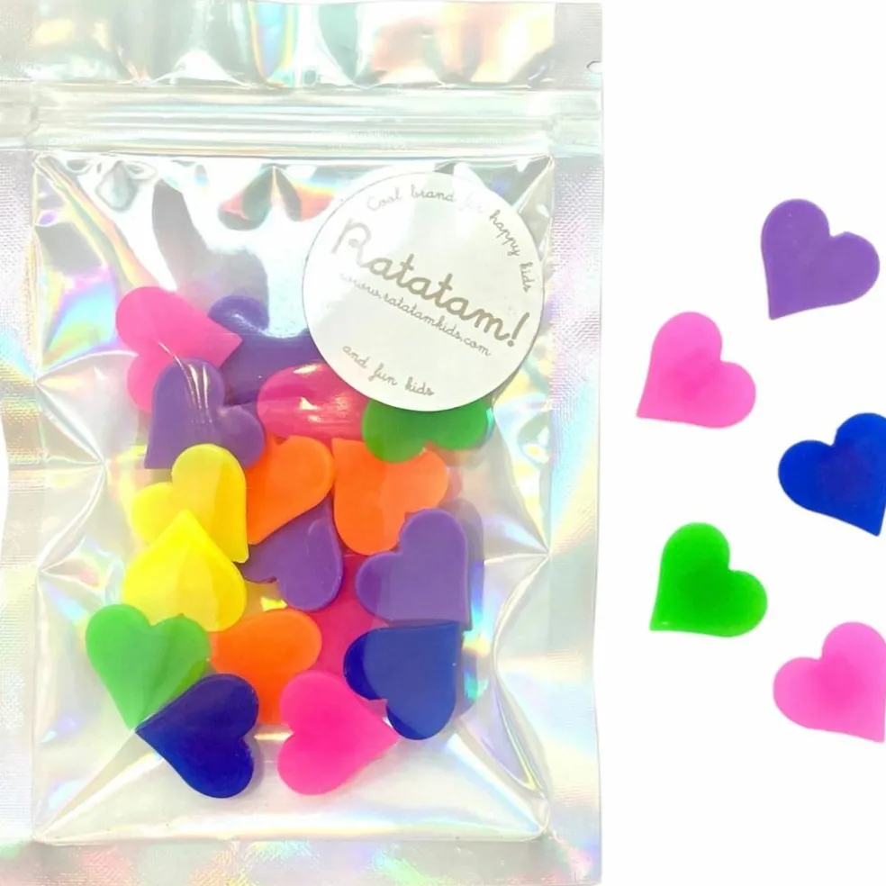 – Comprend 20 coeurs multicolores.