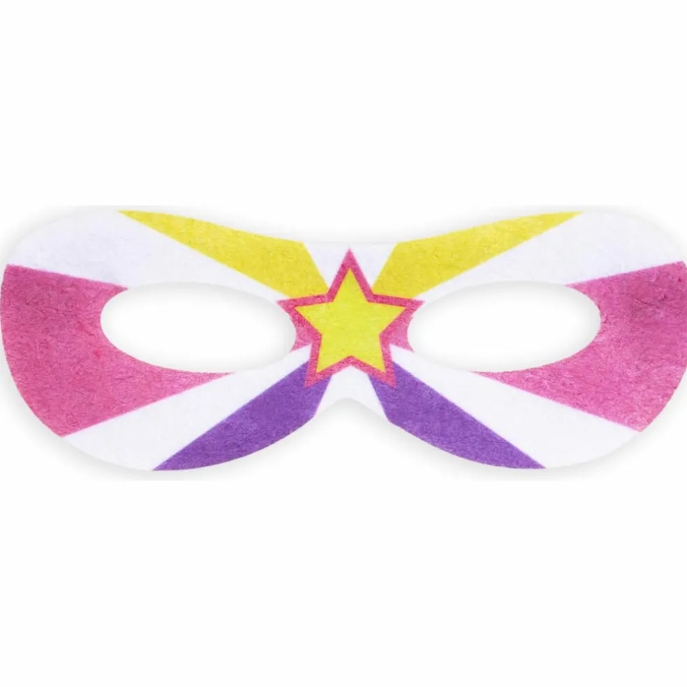 – Complet : cape scintillante et masque assorti pour un look héroïque.