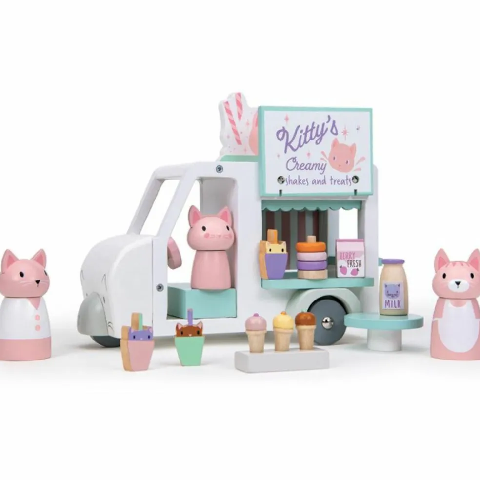 Faites voyager l’imagination de votre enfant avec la Camionnette à Milkshake Kitty de Tender Leaf, un jouet en bois plein de charme et de fantaisie !
