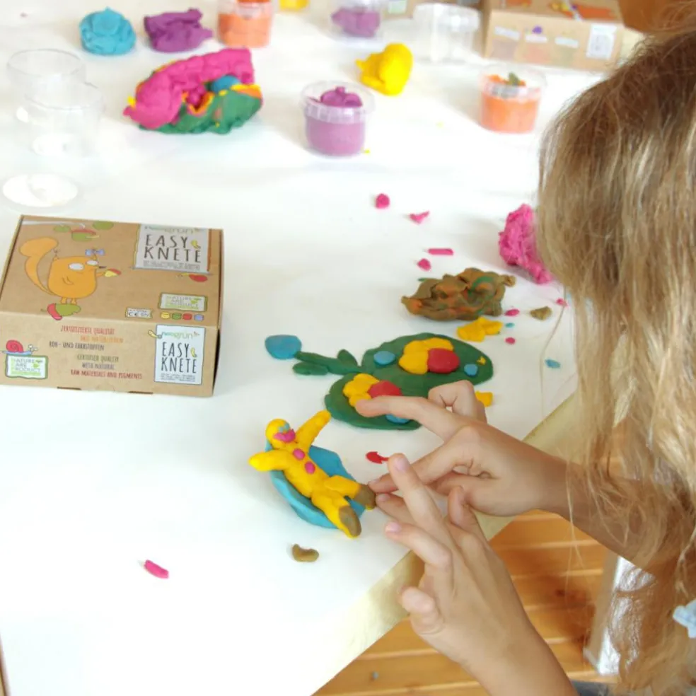 Lorsque deux suricates ouvrent l’argile organique, ils oublient tout ce qui les entoure et s’amusent beaucoup. Les enfants expriment leur imagination à leur manière. Pour donner forme à leurs idées illimitées, découvrez la pâte à modeler Easy Clay particulièrement douce et facilement malléable. La combinaison d’ingrédients naturels respectueux de l’environnement et de pigments végétaux raffinés rend l’expérience créative sûre, durable et colorée. L’argile Easy Clay est extra-douce et élastique, ce qui permet non seulement de modeler, mais aussi de presser, d’imprimer, de tamponner et d’étaler sur du papier pour créer des images 3D.