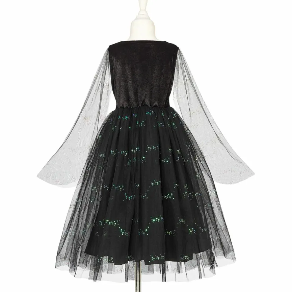– Un design féerique : voile en tulle, sequins colorés et manches fluides pour une allure ensorcelante.