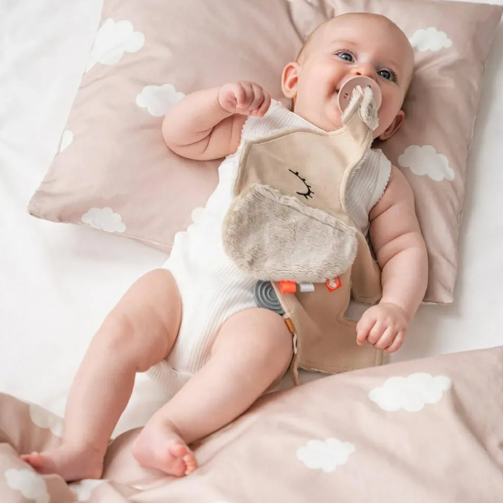 – Doudou attache-sucette en couleur sable en forme d’Elphee est le compagnon idéal pour votre bébé.