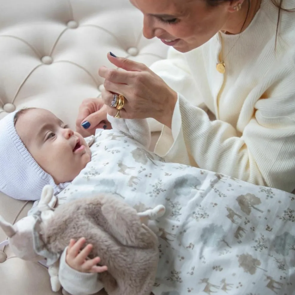 – Ce faon de 21 cm, confectionné en velours doux et en tissu peluche ultra moelleux, offre une texture délicate et agréable au toucher, idéale pour calmer et générer de la sécurité chez le bébé.