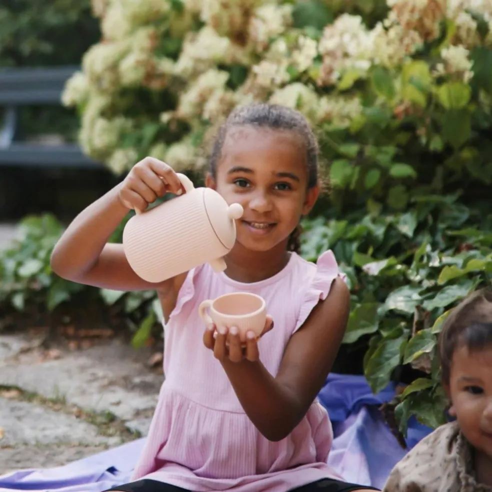 – Comprend 1 théière avec couvercle amovible et 3 tasses.