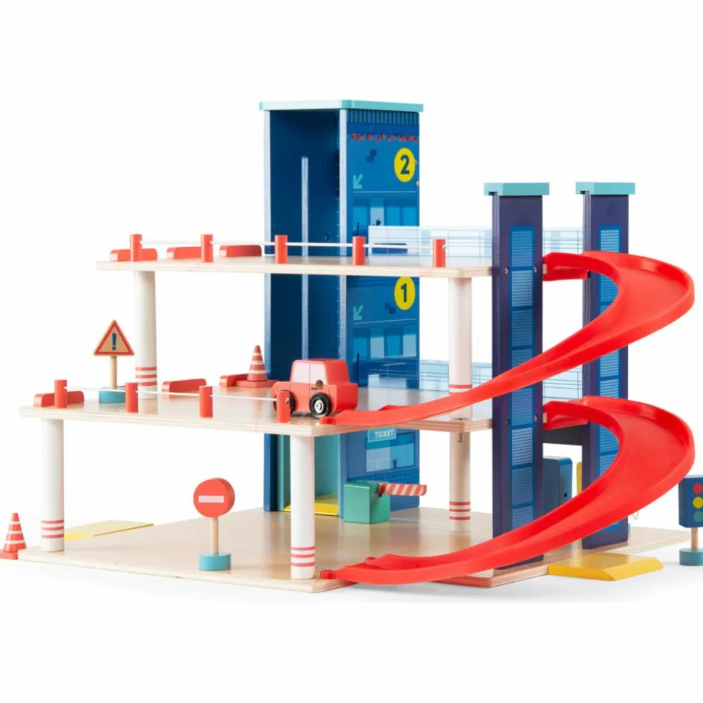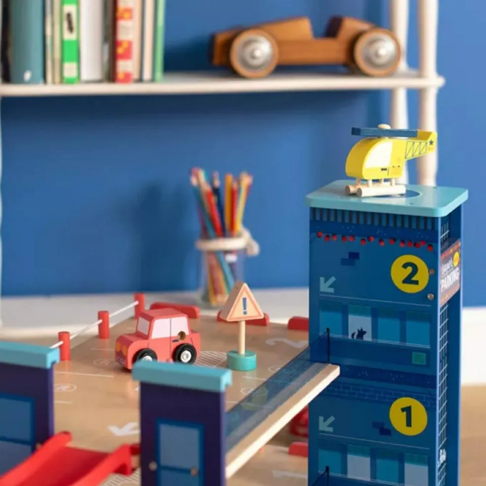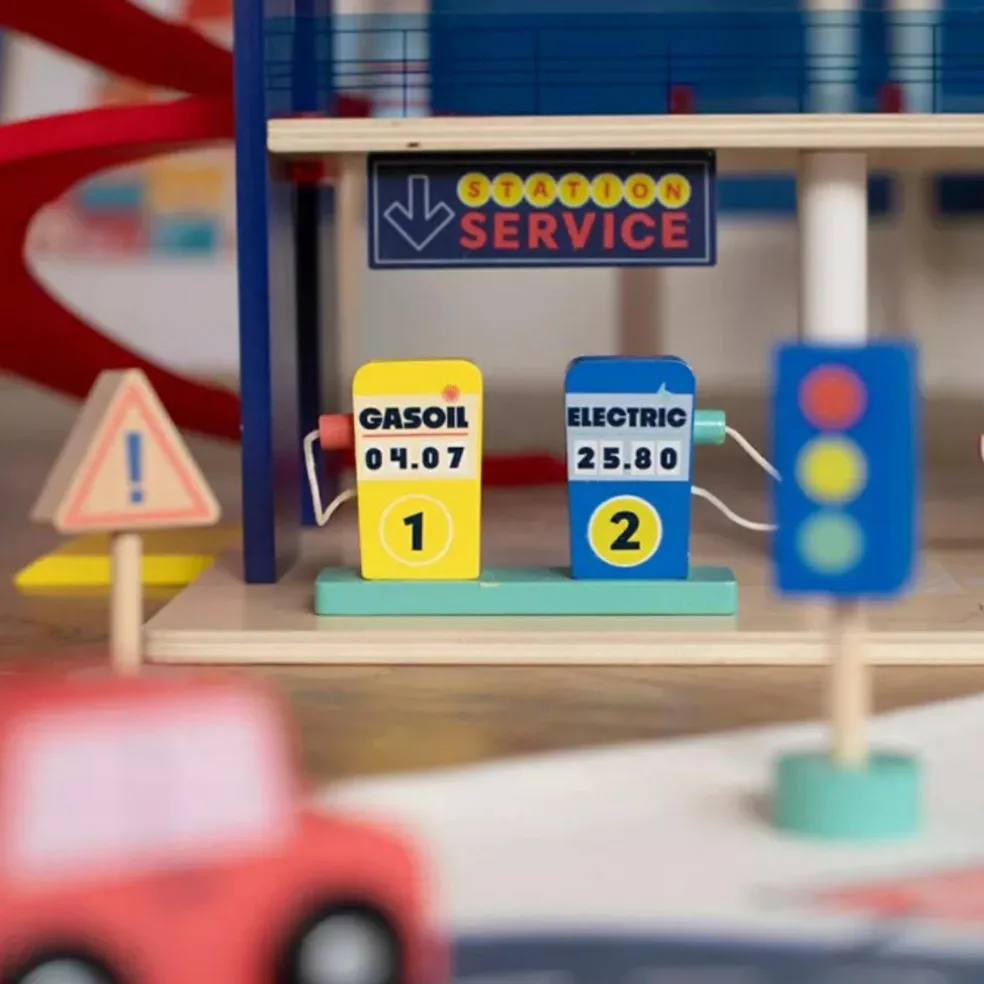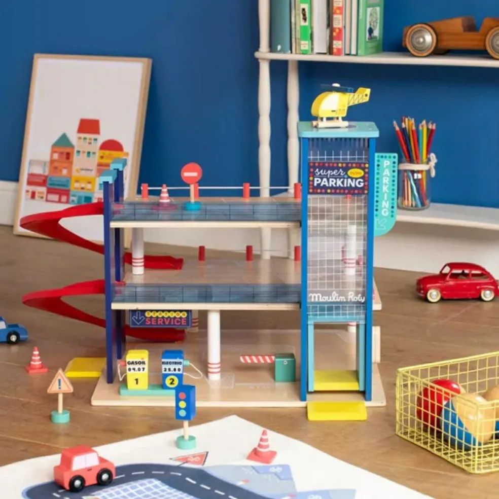 Avec le Garage Avenue en bois de Moulin Roty, chaque enfant devient le héros de ses propres histoires ! Sur 3 niveaux ludiques, il offre tout ce qu’il faut pour vivre des aventures pleines d’action : ascenseur, rampes en spirale, panneaux de signalisation, pompes à essence et même une aire d’atterrissage pour l’hélicoptère. Au volant de la petite voiture ou aux commandes du rotor, les petits explorateurs s’amusent à imaginer la vie trépidante d’un vrai parking animé.