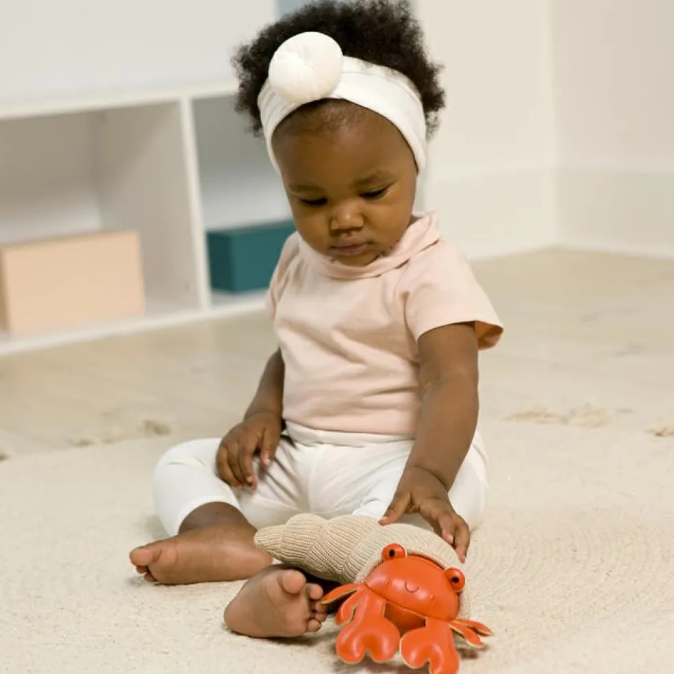 – Petite attache intégrée permettant de fixer à une arche d’éveil.