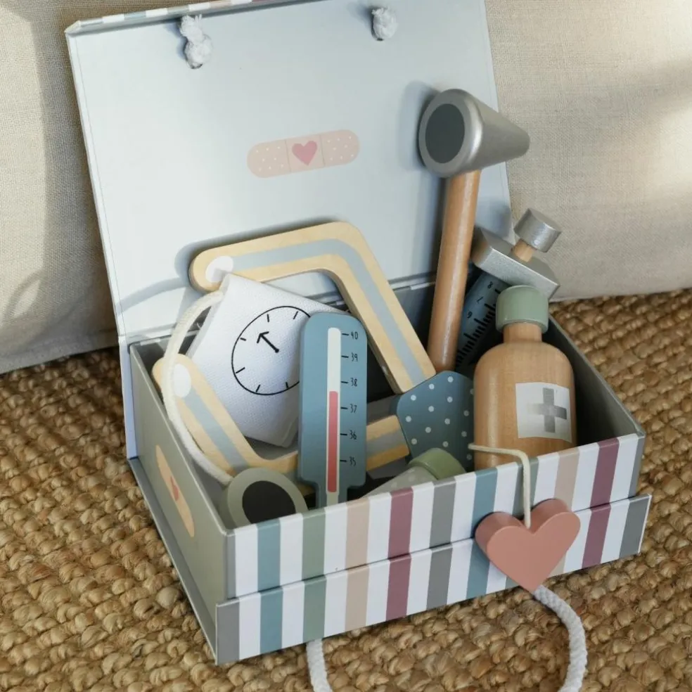 Avec cette mallette élégante et complète, les enfants peuvent soigner leurs poupées, leurs peluches et même toute la famille. Un jeu de rôle amusant qui stimule l’imagination, développe l’empathie et aide à apprivoiser la peur du médecin. Grâce aux accessoires réalistes inclus, les petits docteurs en herbe s’amusent à ausculter, piquer et panser comme de vrais pros !