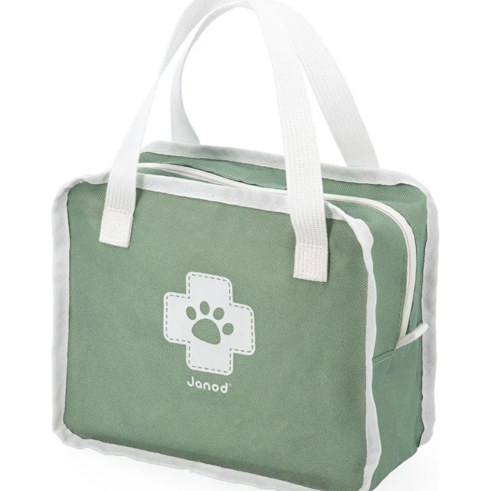 – Comprend 1 badge, 4 cartes ordonnances, 4 radios en carton, 1 bandage, 1 collerette en feutrine, 1 stéthoscope, 1 seringue, 1 thermomètre, 1 pot de crème.