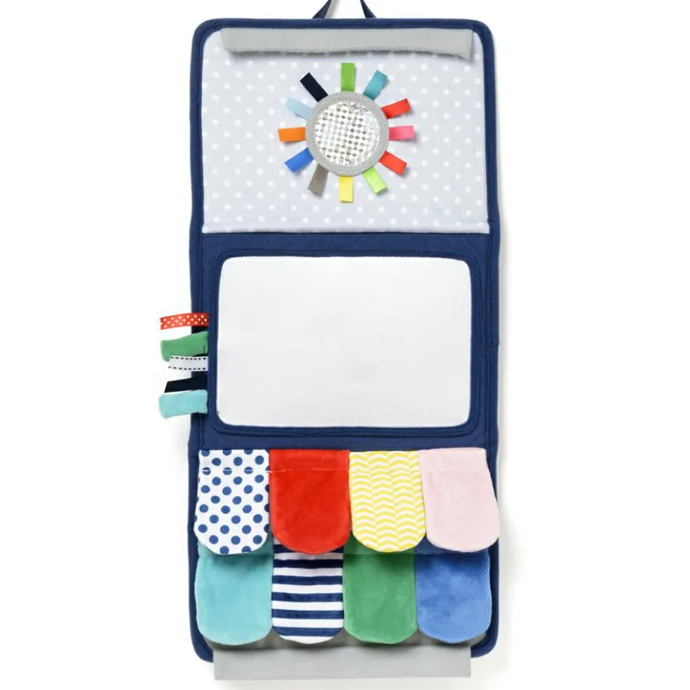 Ce miroir multi-activités pliable réserve de nombreuses découvertes à votre bébé ! Il peut l’explorer entièrement déplié, à plat, ou plié dans sa position de chevalet. Sur chaque panneau, bébé découvre une activité différente pour mettre ses sens en éveil. Du miroir aux grands flaps à manipuler en passant par les étiquettes colorées et les textures à découvrir, il éveille ses sens au rythme des activités qui se suivent et ne se ressemblent pas. Le petit plus ? Ce miroir multi-activités pliable possède même une pochette transparente pour insérer une carte !