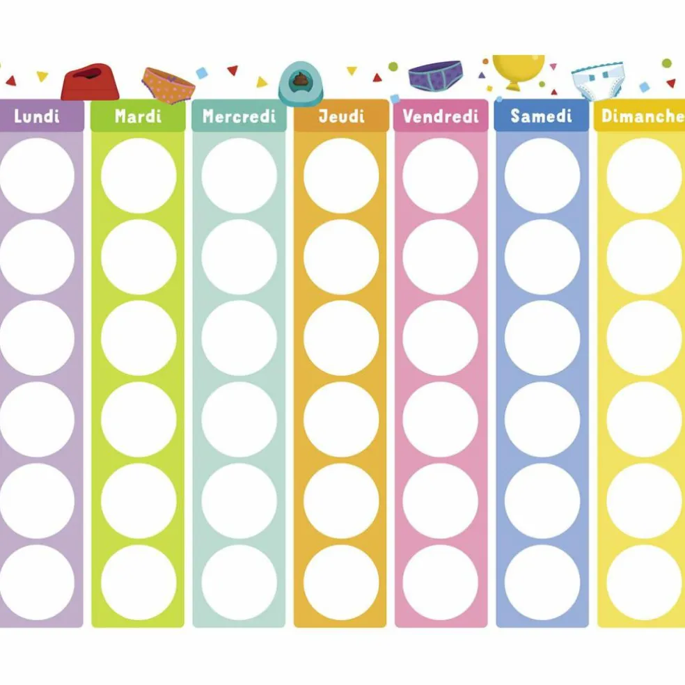 – Un calendrier à remplir avec des autocollants pipi et caca pour aider et faciliter l’utilisation du pot.
