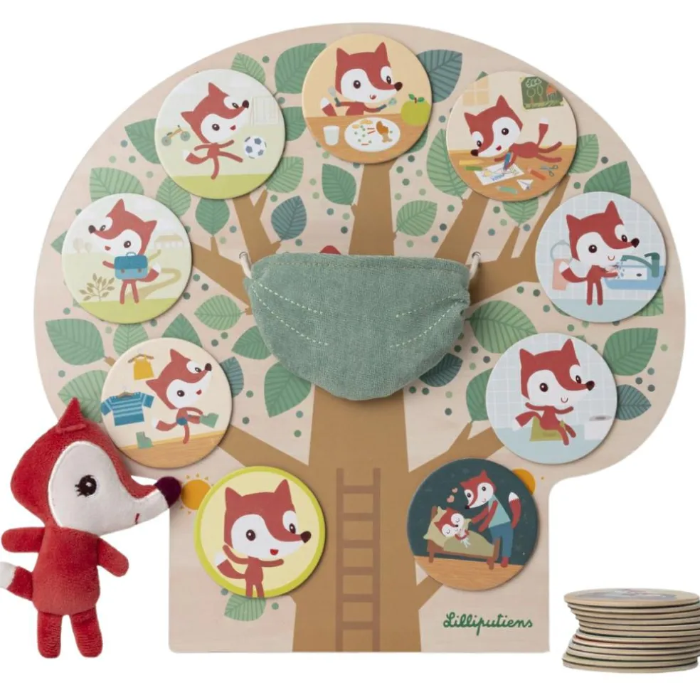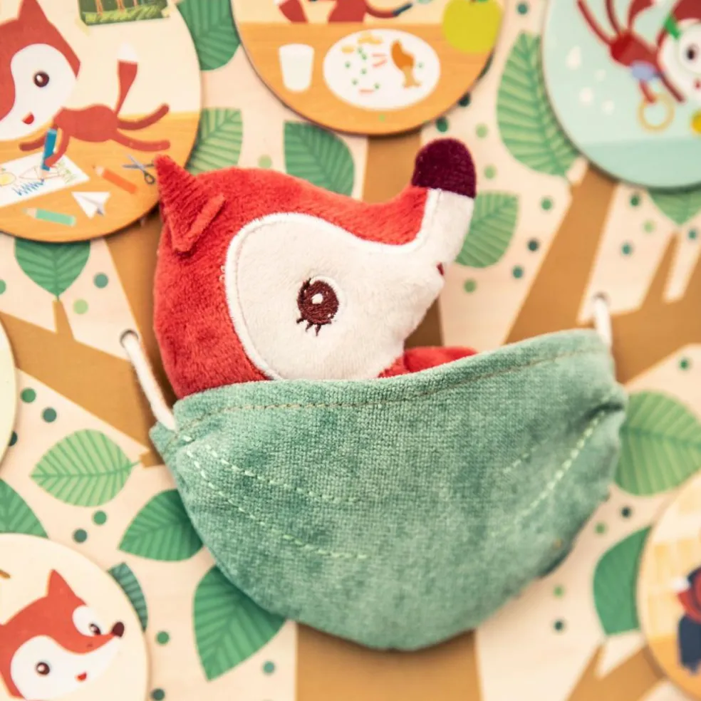 – Comprend 1 arbre en bois, 19 cartes aimantées, 1 peluche et 1 hamac.