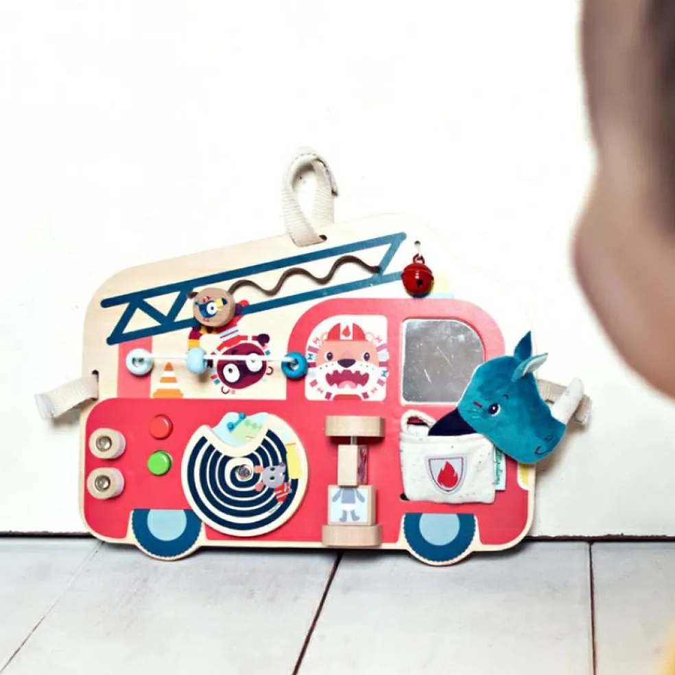 Le panneau d’activités Camion de pompier de la marque Lilliputiens développe la motricité fine des tout-petits grâce aux nombreuses activités. L’enfant découvre des formes, des textures, des couleurs…