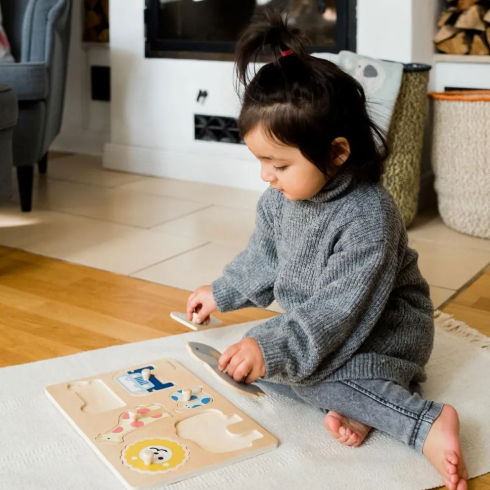 – Pièces en bois faciles à saisir grâce à un petit bouton.