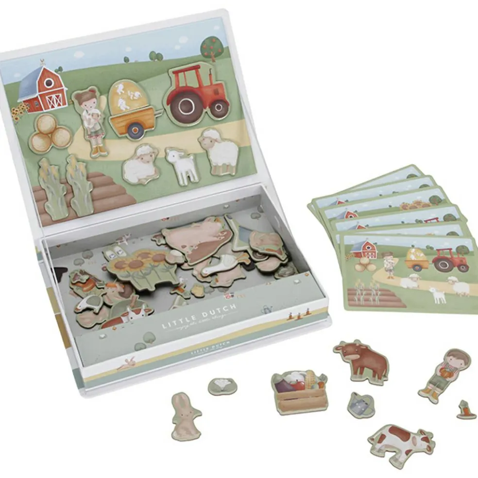 – Que voyez-vous à la ferme ? Reproduisez les cartes fournies et placez les aimants au bon endroit.