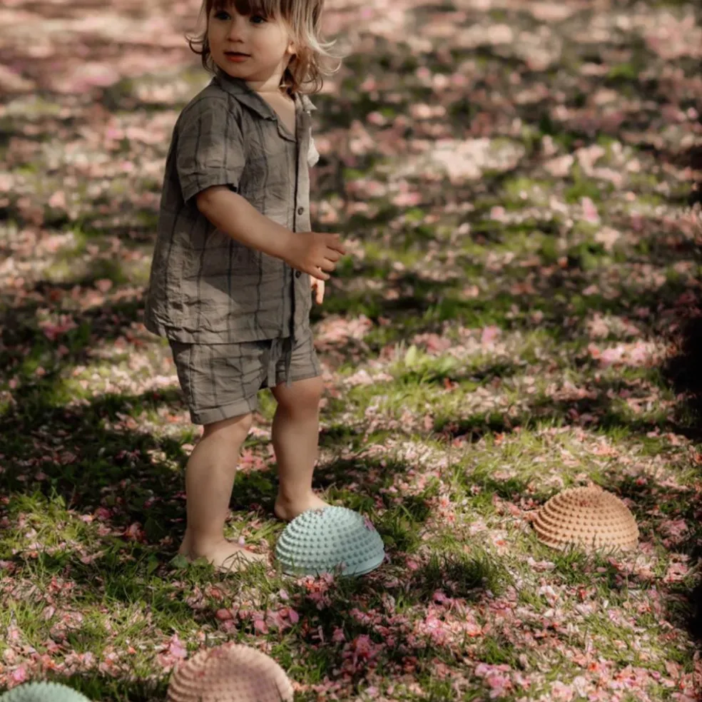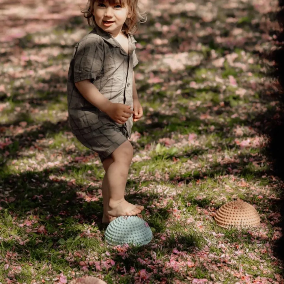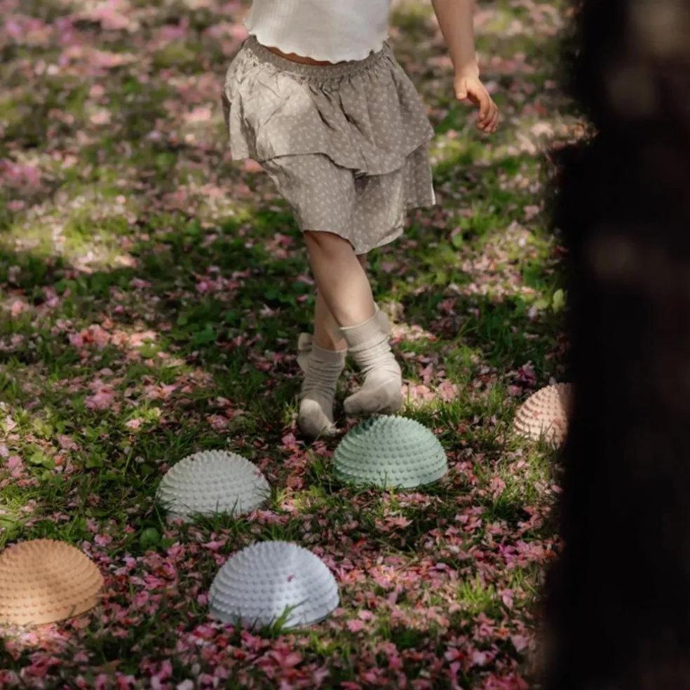 – Chaque pierre est dotée de petits picots, ce qui permet à l’enfant de se tenir debout plus facilement tout en stimulant le sens tactile..