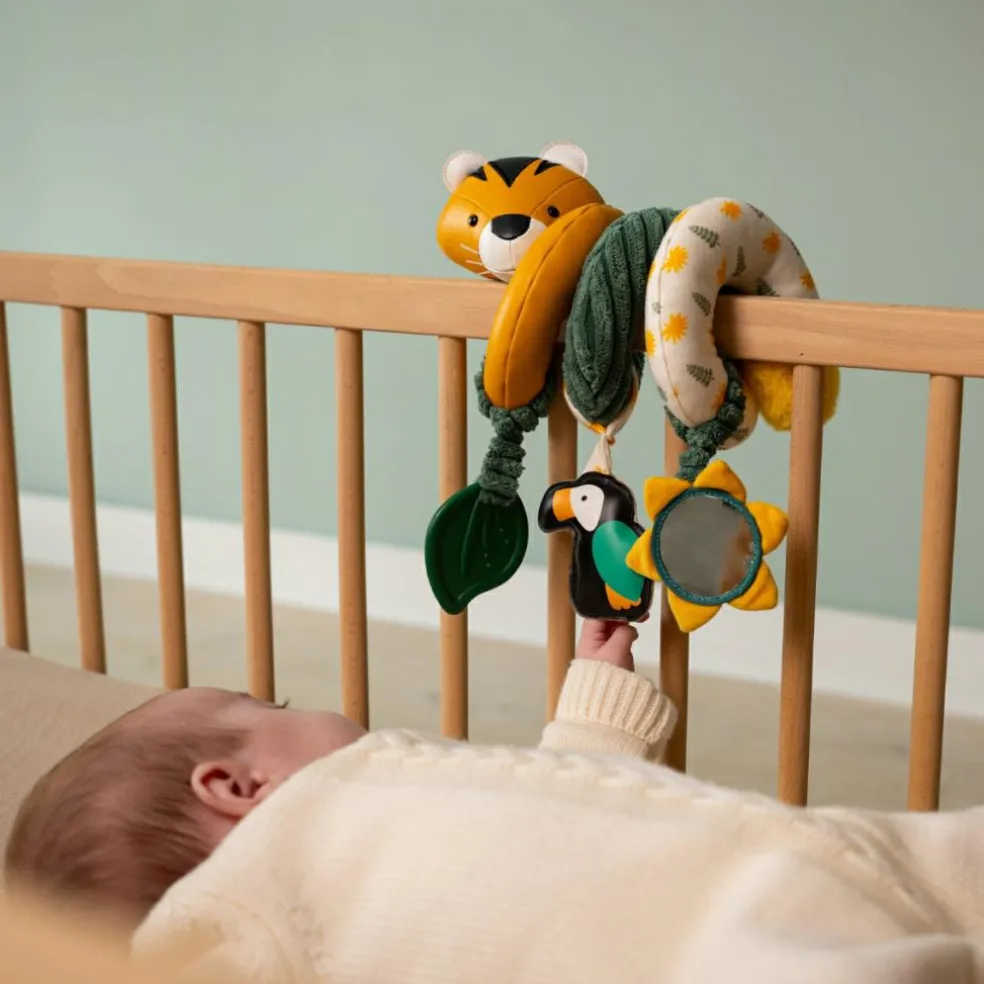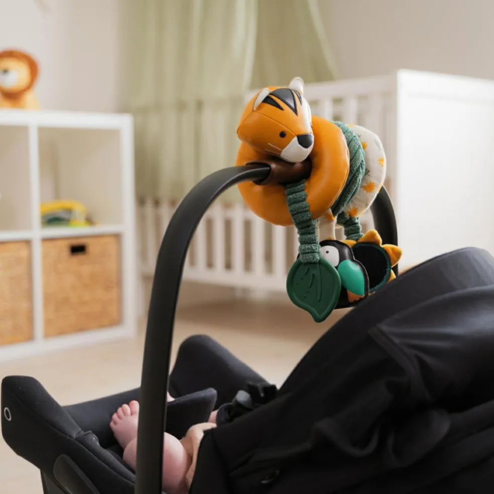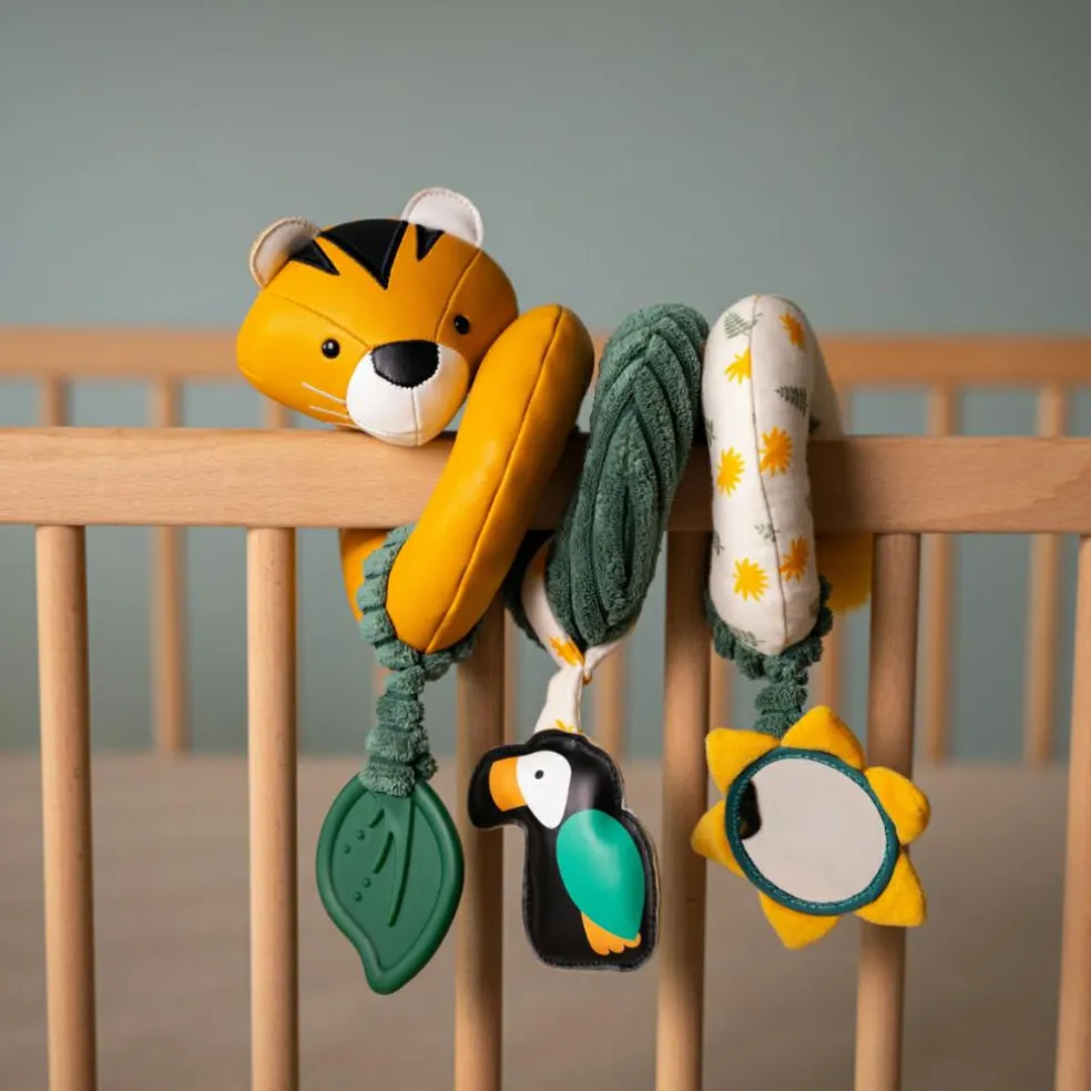 La spirale d’activité Little Big Friends Jungle amusera bébé lors de ses déplacements en poussette ou cosy.
