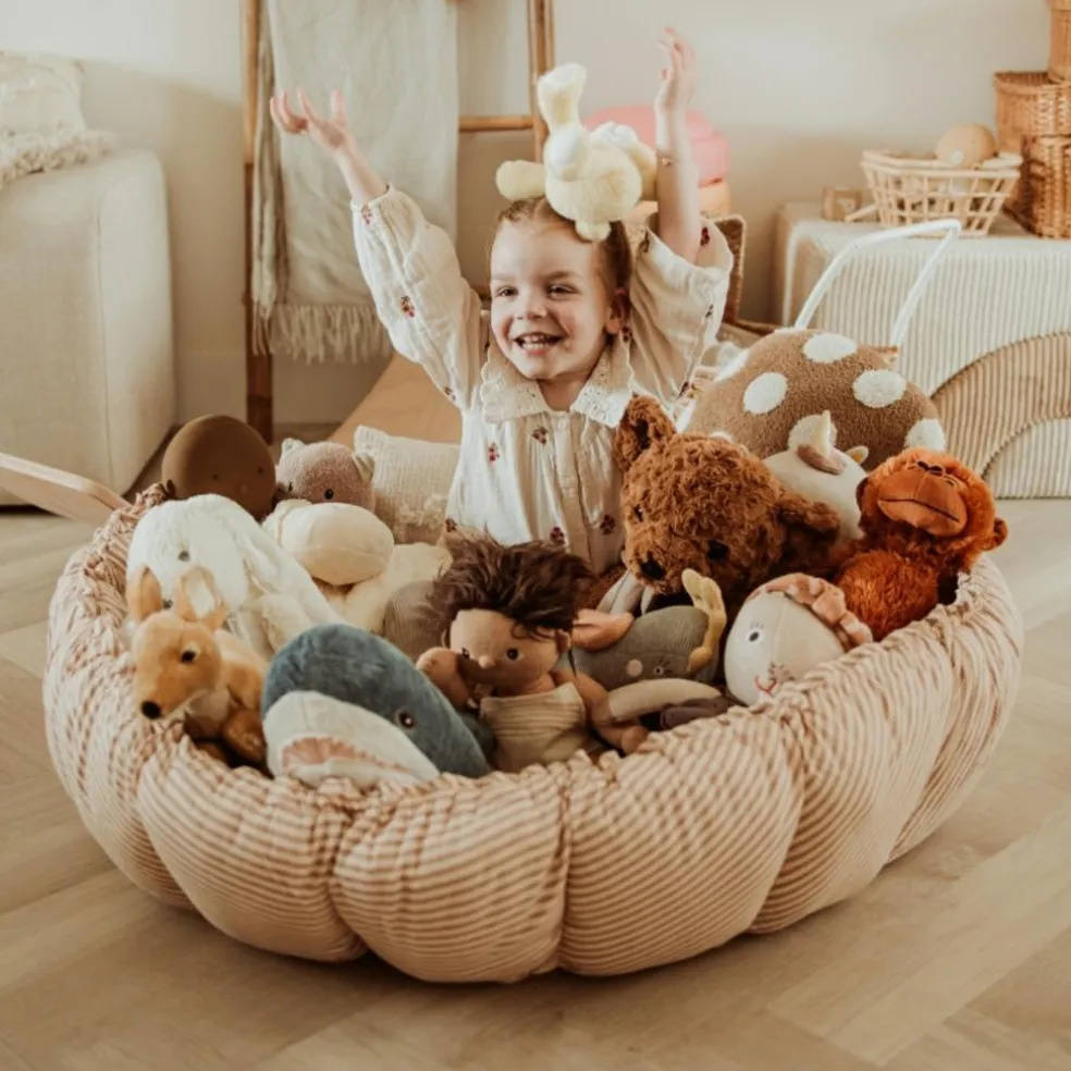 – 3 en 1 : tapis de jeu, sac de rangement pour jouets et cocon nid.