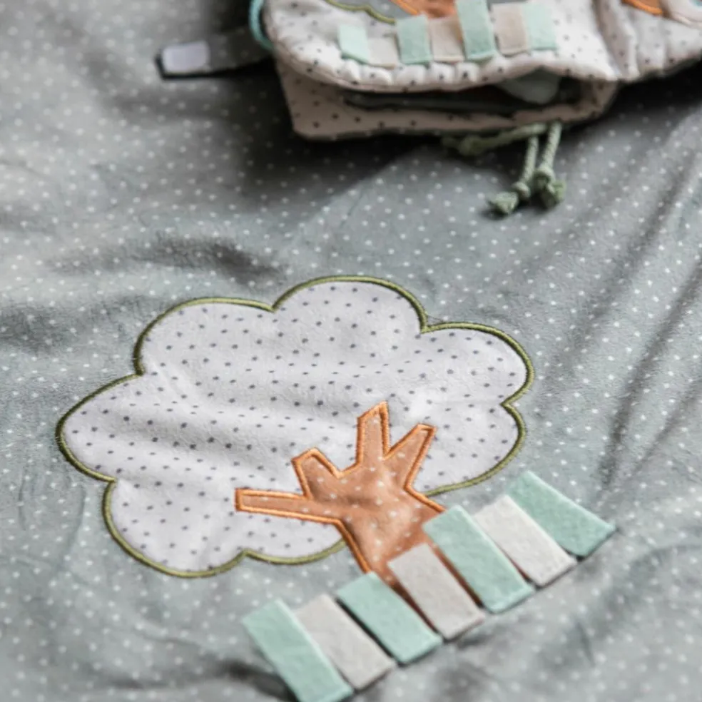 – Les textures variées et les éléments interactifs contribuent au développement des capacités sensorielles et de la motricité fine de bébé.