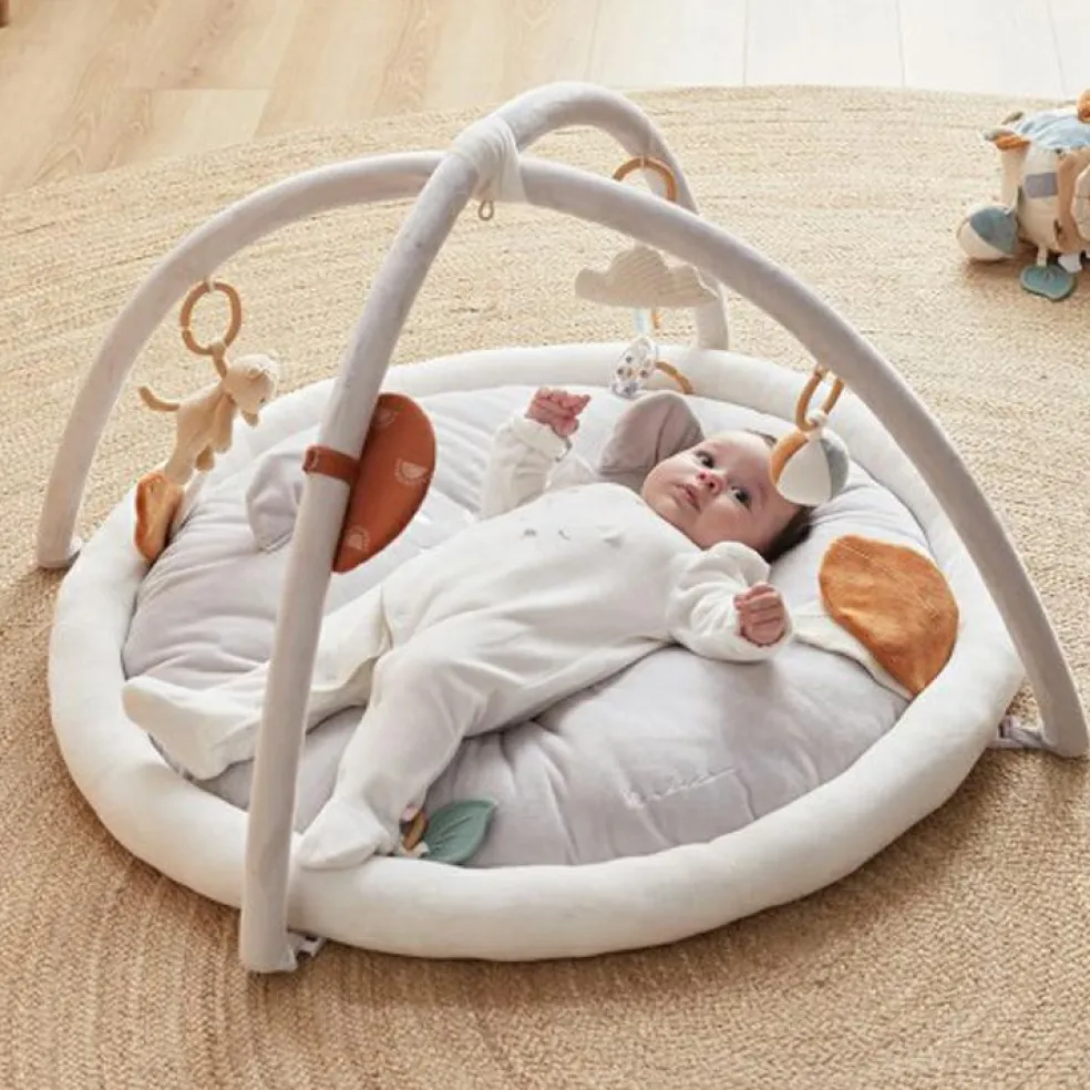 – Différentes matières, sons et activités : miroir, pouët, papier froissé, grelot, jouet de dentition.