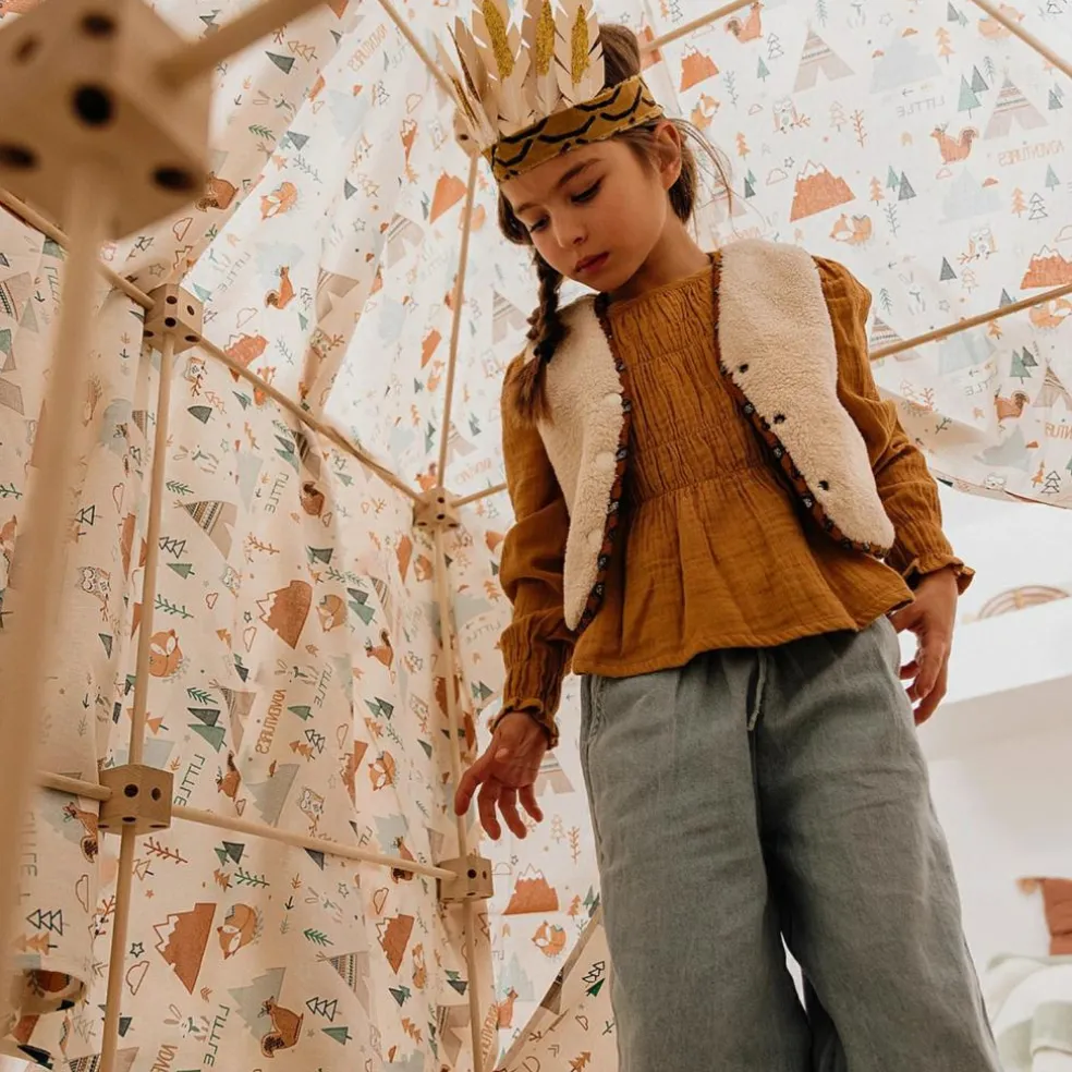 – Contient 4 toiles décoratives imprimées 100% coton du motif « Renards et Tipis ».