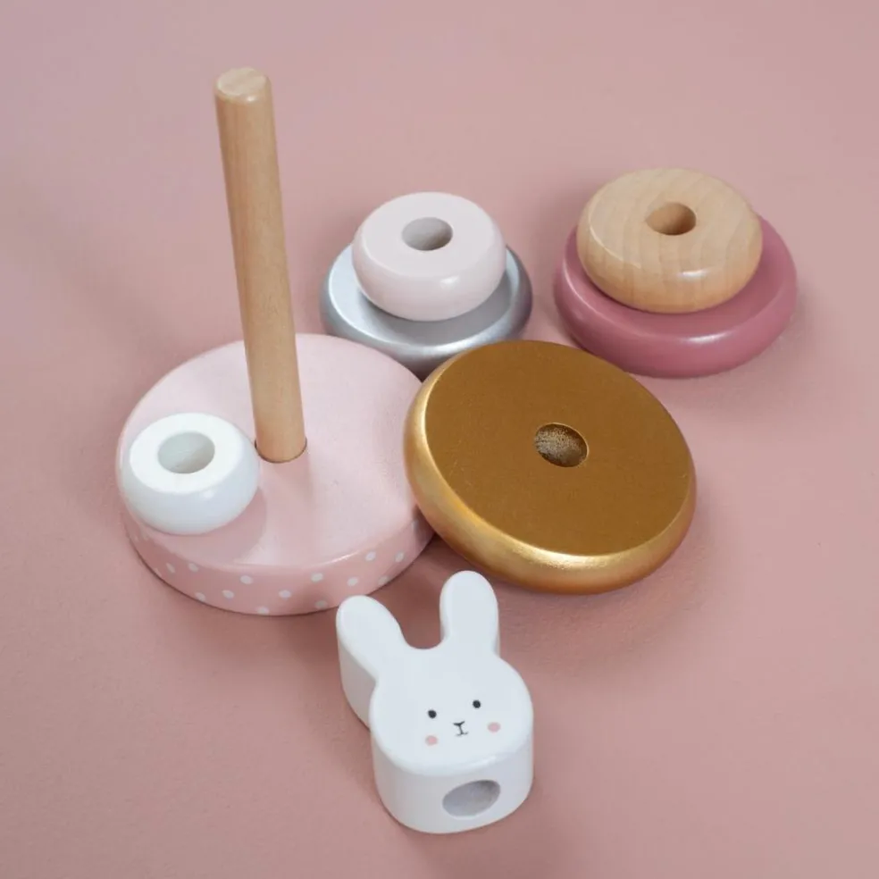 – Tour à empiler en bois avec tête de lapin.