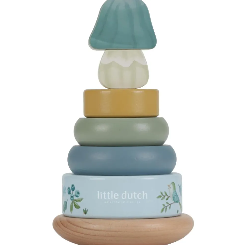 – Les enfants sont encouragés à placer les anneaux en bois dans le bon ordre et à les empiler sur la pyramide.