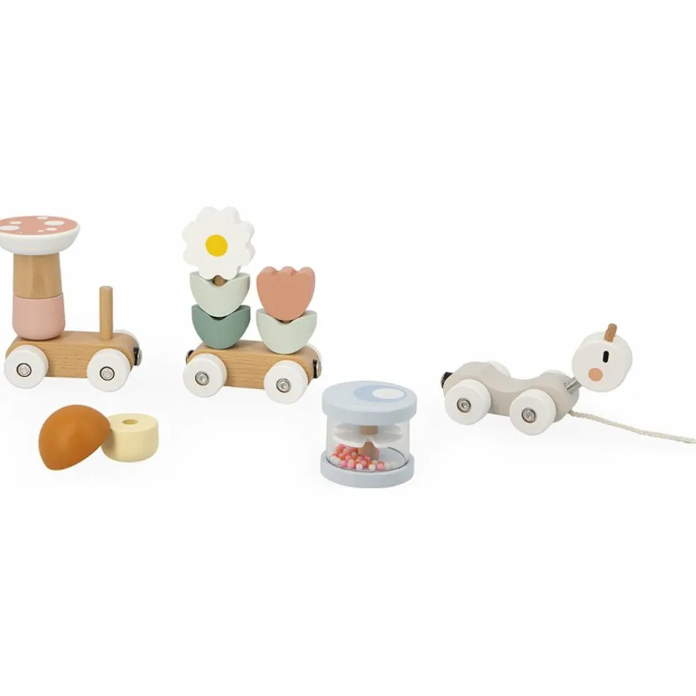 Embarquez pour de joyeuses aventures avec le Train d’activités à tirer Sweet Cocoon de Janod, un jouet d’éveil en bois aussi ludique qu’évolutif !